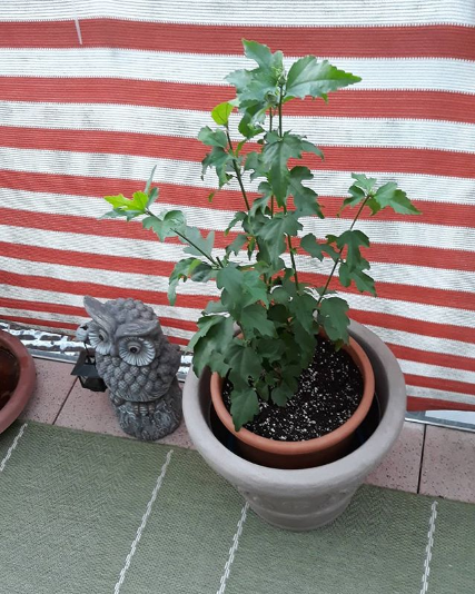 ist am selben Tag noch eine Hibiskus syr. Woodbridge eingezogen, die die Eigenheit besitzt eine Blüte nur einen Tag zu lassen.