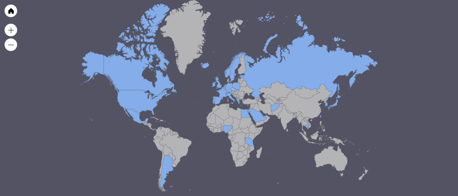Dann kommen wir nun mal zur Weltkarte und schauen mal wie weit wir sie schon eingefärbt haben. Wir sind richtig gut: